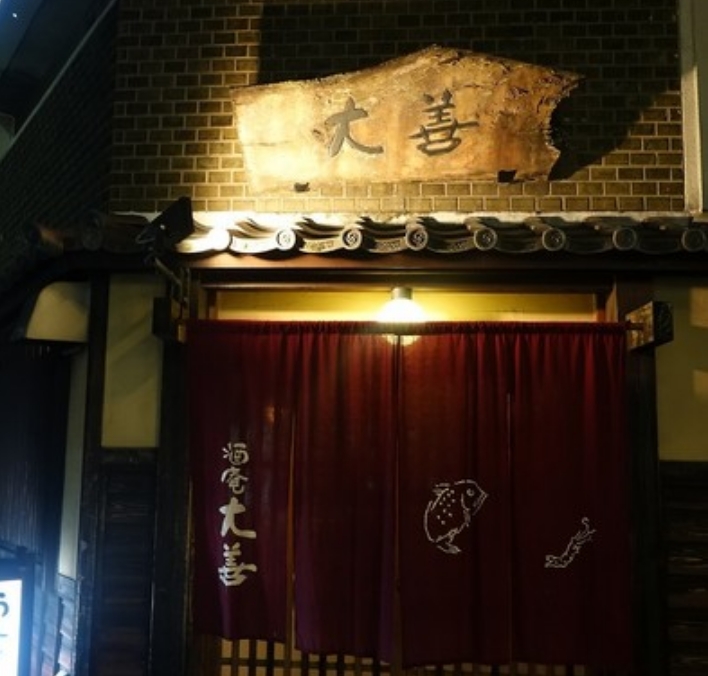大善は、温泉街のような居心地の良い雰囲気で、大将の気さくなおもてなしが魅力。あっさりと優しい味付けの料理が、心温まるひとときを提供します。