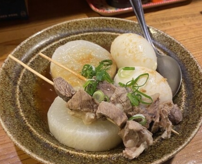 姫路おでんは、しょうが醤油で食べるあっさりとした味わい。具材がしっかりと出汁を吸っていて、ほっとする一品。また、ひねぽんは歯ごたえのある親鳥とさっぱりとしたぽん酢が絶妙です。
