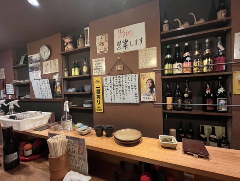 店内は清潔感があり、落ち着いた雰囲気。カウンター席で気軽に日本酒と共に料理を楽しむことができ、昼飲みにもぴったりのお店です。親切な接客も魅力の一つです。