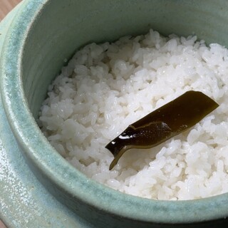 当店で提供するご飯には、京都の老舗“八代目儀兵衛”のお米を使用しております。仕込みから丁寧にお米を研ぎ、浸水は季節によって時間を変えることで水分量を調整。保管も冷蔵にて一定の温度を保つことで、炊きあがりのムラをなくします。お米の粒がふっくら立った香ばしいご飯をご堪能ください◎