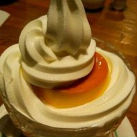 手づくりプリンにたっぷりとソフトクリームが盛られたスペシャルデザートです!