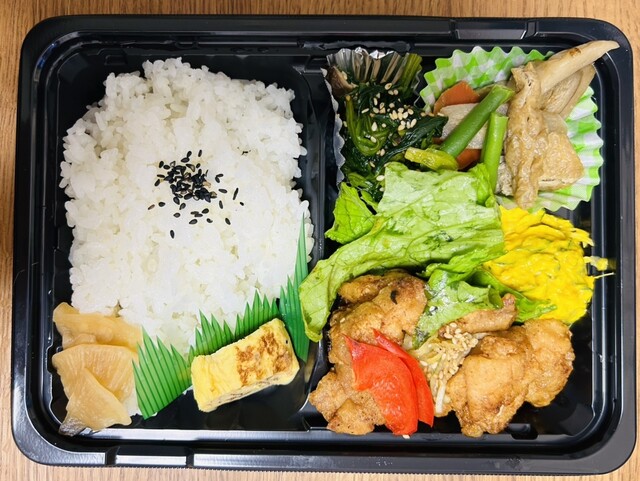 地元の味を大切にし、ホッとするような家庭料理の味わいを提供しています。玉子焼きや煮物、ポテトサラダなど、懐かしい味が詰まったお弁当で、心も体も満たされます。