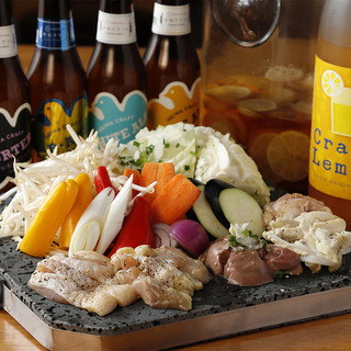 京紅地鶏を、極厚の溶岩鉄板で焼き上げてお召し上げりいただく極上逸品。ふっくらと仕上げられる溶岩仕立てはスタッフおすすめです!お好きな部位だけを単品でご注文いただくことも可能です!