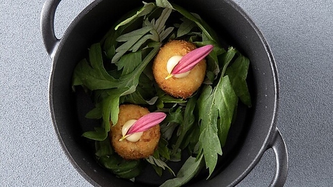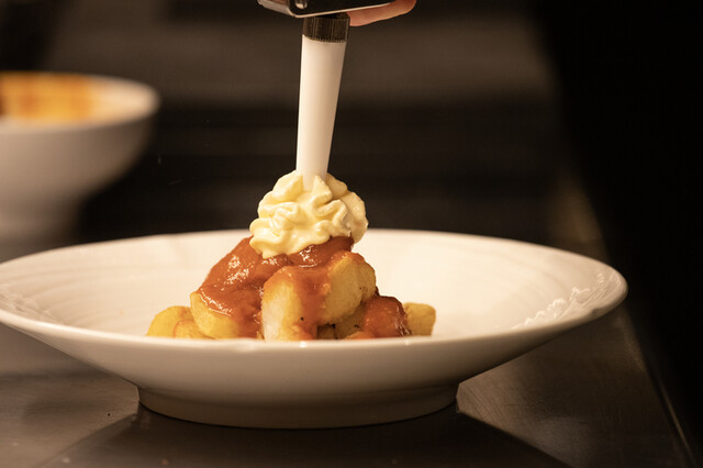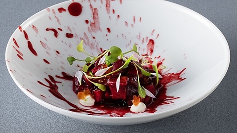 本場ガストロノミーの味と秀逸なスペインワインをカジュアルスタイルで!和牛サーロインと有機野菜や赤海老のカダイフ(2尾)サクランボのガスパッチョなど!