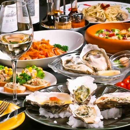 生牡蠣や焼き牡蠣、季節のお魚カルパッチョ、自家製トマトのピッツァなど、全8品が2時間飲み放題つきで4,950円(税込)!リーズナブルな価格で幅広い味わいを楽しめます♪