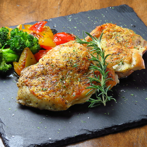 鶏もも肉の香草焼きは、お肉が柔らかくてジューシー!自家製のタレと、肉汁溢れるチキンをじっくりと煮込んだ自慢の一品です。是非一度ご賞味ください!