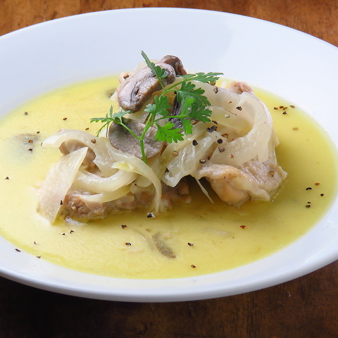 鶏もも肉のシャンパーニュ煮込みは、お酒のおつまみにぴったり!お肉の旨味を存分に味わって頂きたいです!他にも様々な種類のメニューをご用意しております。飲み放題も生ビール、ハイボール、ワイン、カクテル、飲み放題など、幅広くご提供してます♪