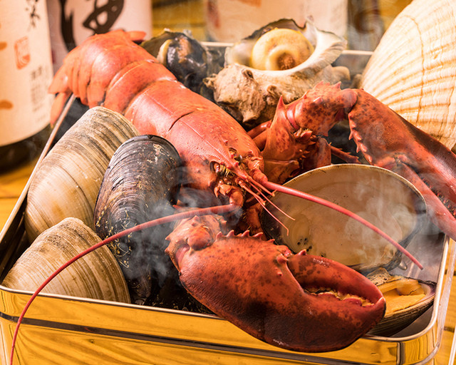 女性にも近年大人気の『海老』オマール海老を使った創作料理もございます。カナダ産天然のオマール海老を養分豊富な5℃の冷海水で眠らせて空輸しております。ストレスがかからない、より自然な状態で取り寄せたオマール海老を活きたまま店内の水槽へ!