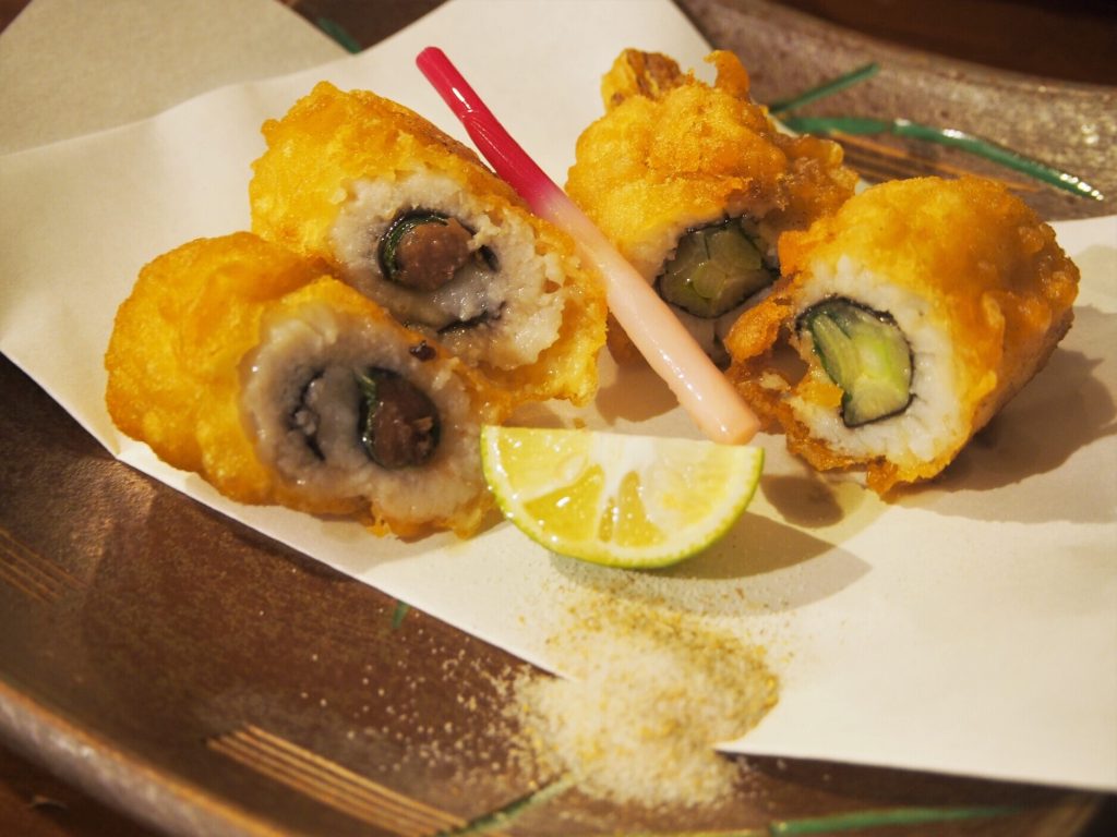 ハモのねぎ巻きや梅肉巻き天は、カリッとした衣とふわっと柔らかいハモが絶妙な組み合わせ。大葉と梅肉の味わいが、さらに引き立ててくれます。