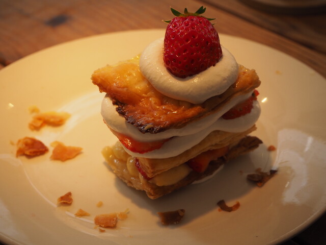 季節ごとの美味しいスイーツが揃うお店。特に、ジューシーな桃を使ったミルフィーユや、コーヒーフラペチーノ風のかき氷が人気。手作りのケーキやタルトも優しい味わいで、訪れるたびに楽しめます。