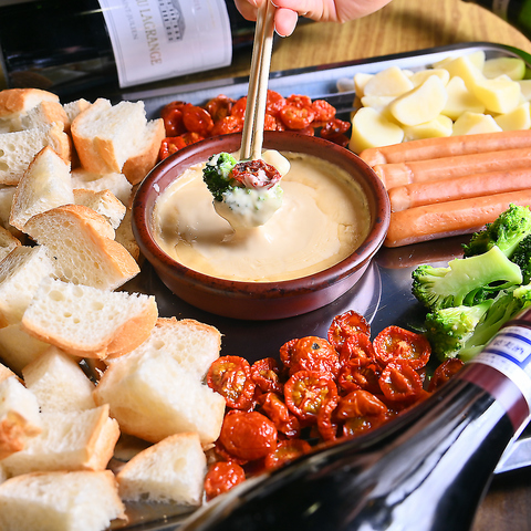 こんなチーズフォンデュ食べたことない!こだわりの具材を濃厚チーズにたっぷりつけてお召し上がりください♪おすすめは旨味がギュッと凝縮されたセミドライトマトです!一度食べたら忘れられないチーズフォンデュをみなさんでお楽しみ下さい!