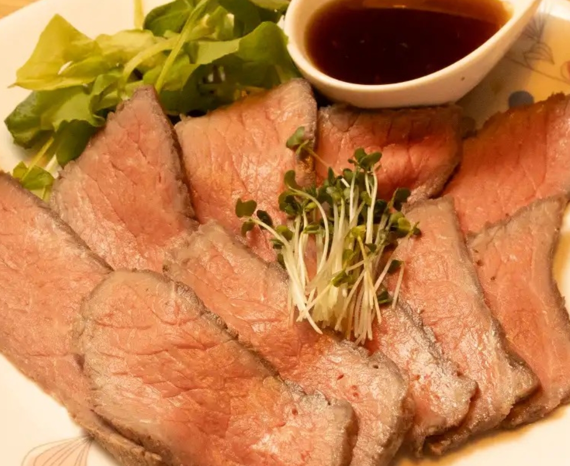 当店人気ナンバー1!!しっとりDaRuMaのしっとりローストビーフフルサイズ。お肉が本当に柔らかくて、何枚でもパクパクと食べたくなるほどの魅力。