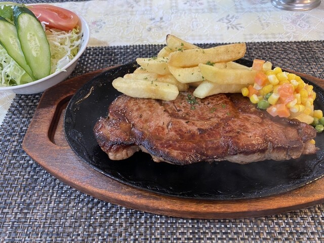 オックスはサーロインステーキや牛タンシチュー、海老グラタンなど豊富なメニューが魅力。事前予約でスムーズに注文でき、ボリューム満点の料理と笑顔あふれるサービスが楽しめます。