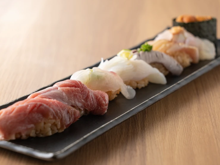 四季折々の海の幸がふんだんに盛り込まれ、おいしい食べ比べを楽しめる一皿です。味の好みや苦手なものがあれば、内容をアレンジしてもらうことも可能。少しずつ、いろいろ味わいたいときにオススメです!