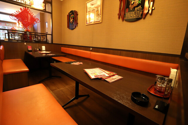 伝統的な中国様式の内観が自慢の、奥行きのある広々とした店内。落ち着いた間接照明が心地よく、お一人様でもテーブル席でごゆっくりとお食事をご堪能いただける快適な空間です。半個室もご用意しておりますので、ご宴会の際にも気兼ねなく楽しいひと時をお過ごしいただけます。忘新年会や歓送迎会はもちろん、少人数でのご宴会や、お仕事帰りのサク飲みなど、様々なシーンにお気軽にご利用ください。