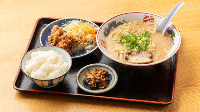 鹿児島産の高菜を使い、製造から包装まで全て手作業で仕上げる名物「辛子高菜」は、ご飯にもお酒にもぴったり。中辛と辛口の2種があり、お土産としても人気です。名物の豚骨ラーメンに加え、1,000円のちょい飲みセットも好評。仕事帰りに立ち寄りたくなる博多の名店です。