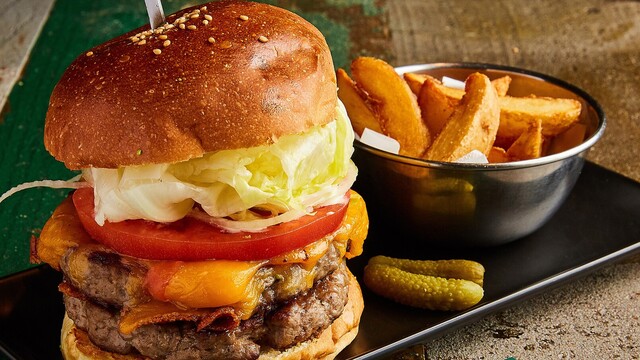 当店自慢の“ハンバーガー”をお召し上がりください。牛100%の、つなぎなしで作られた150gのパティはボリューム満点!塊肉から挽いて当日作っているため、肉肉しくジューシーな味わいです!