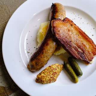 お酒と相性の良いアラカルトをラインナップ。テリーヌやベーコン、イチオシの自家製ソーセージは、お店で手作りしております。そのほか3種類の”サラダ”や、ポテト・オニオンリング・フィッシュ&チップスなどの“揚げ物”、ステーキやローストチキンなどの“肉料理”などさまざまな一品をご用意!