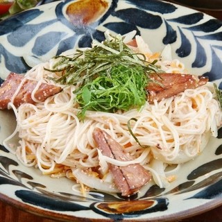 地元の食材を直接仕入れているので、その日手に入った特別な食材でできるおすすめの逸品や沖縄の郷土料理『ソーミンチャンプル』をアレンジした人気メニュー『明太ソーメン』など、代表的な沖縄料理に工夫を加えたオリジナルの創作料理もたくさんあります!