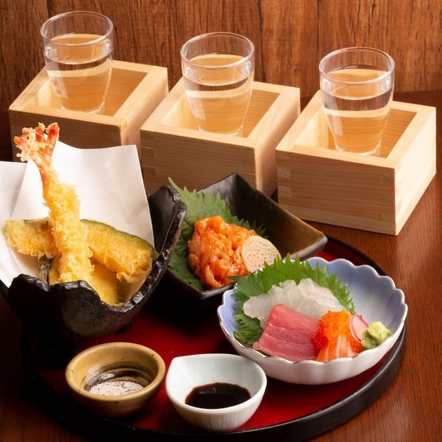 サクッと揚げたて天ぷらと当店自慢の日本酒で一杯♪旬の食材を使用した天ぷらもございます!まずはマグロの刺身、次に季節の天ぷら、最後は酒の肴をあてに日本酒を◎吟醸マグロをご堪能ください!!