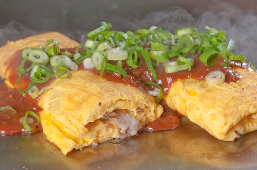 ふわとろオムライスを特製のデミグラスソースで!また、鉄板焼きやさんで味わう醍醐味!リピーター続出!一口アワビも、満足間違いなしのやわらかさと美味しさです!