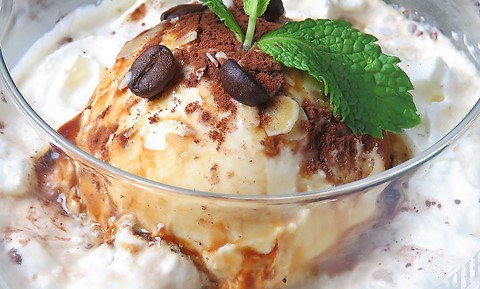 フォンダンショコラに生クリーム、アイスをのせて、仕上げにラテかチョコを…☆その名の通り、オトナのデザートです…♪