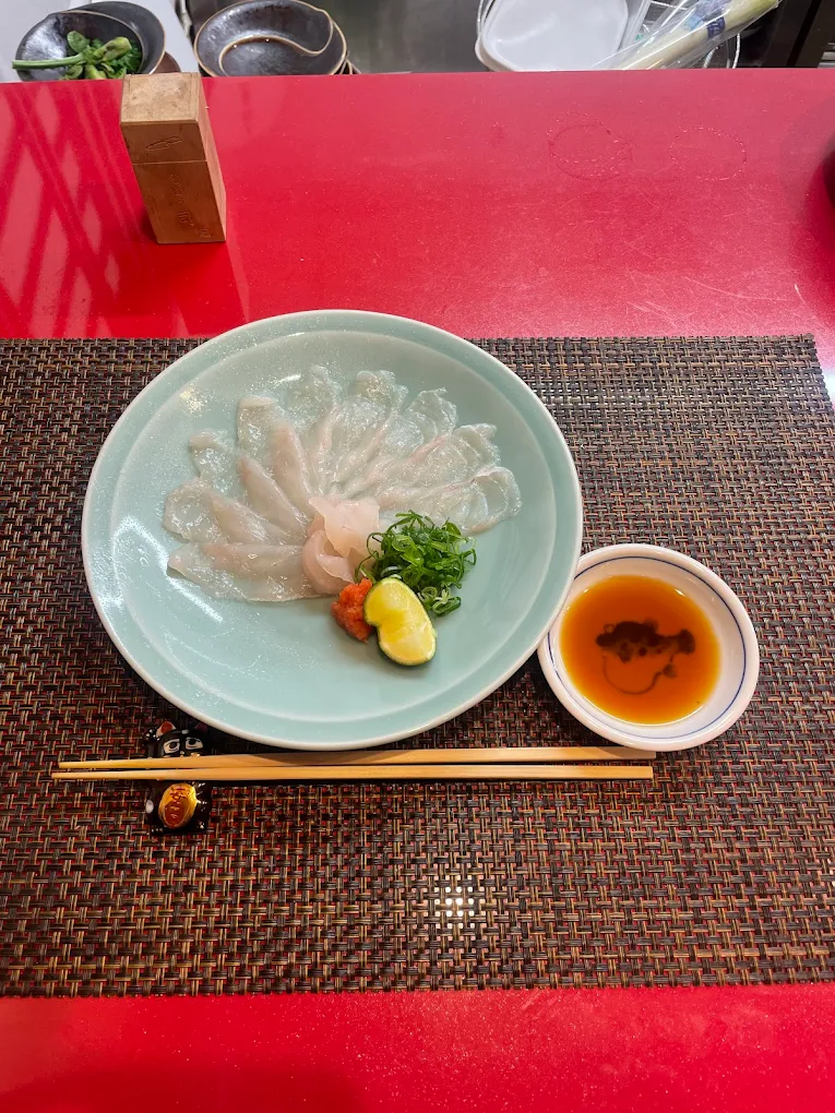 運ばれてきた瞬間に鮮度の良さが伝わる一皿。ぷりっとした歯ごたえと、肉厚な身から広がるふぐ本来の旨みがたまりません。丁寧な包丁仕事により、噛むほどに味わいが深まり、思わず盃が進みます。素材の状態が良いからこそ成立する、完成度の高いてっさです。
