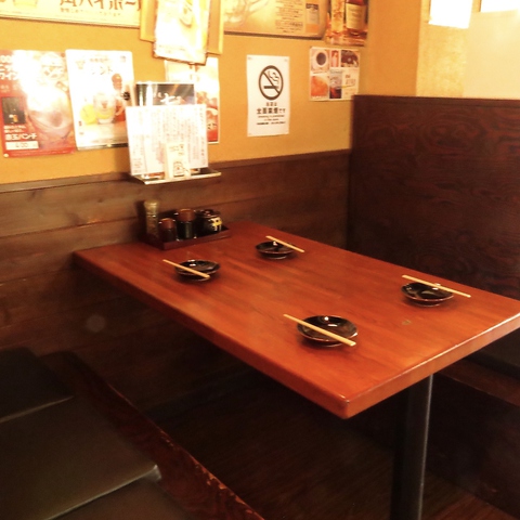 のれんをくぐると、木のぬくもりとスタッフの活気で溢れる店内へ。ふんわり漂うスープの香りをいっぱいに吸い込むと、食欲が止まらない!?カウンター8席、テーブルボックス席は6名×3席、2名×1席。おひとり様からご家族や仲間同士の飲み会にピッタリ!もちろん昼飲みも大歓迎!