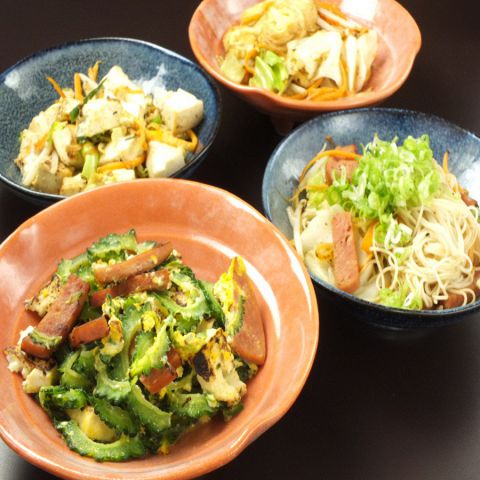 沖縄料理の大定番!かつて沖縄は全国一の長寿県でしたが、それを支えたのが栄養たっぷりの食事沖縄県民にもっともなじみ深いのが、県外でも知られるようになったチャンプルーと云われる炒め物そこには沖縄ならではの調理法南国の雰囲気を感じながら、ビール、泡盛とともにお楽しみください