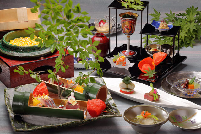九州の旬の野菜や魚介、博多和牛など地元食材をふんだんに使った懐石料理をコースで堪能できます。毎月変わるメニューは、季節の移ろいを感じられる逸品揃い。伝統を大切にしつつ、現代の味覚に合わせた繊細な料理が楽しめ、特別な日の贅沢なひとときを彩ります。