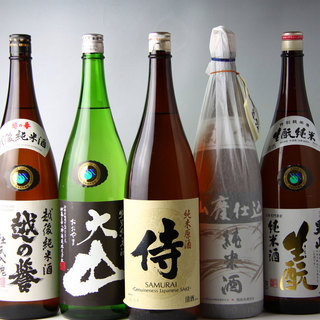 当店の名前と同じ【侍純米原酒】をはじめ、県内外の美味しい日本酒を取り揃えております。グラス・300mlボトル・4合ボトルでご提供していますので人数に合った量でご注文頂けます。