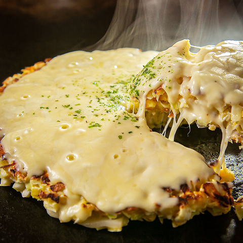みんな大好きもちチーズ♪あっつあつで伸び~るチーズと旨いお好み焼きの最強タッグ☆悪魔的うまさです。さらに明太マヨネーズをプラスした《餅っと明太マヨネーズ焼》870円(税込)もおすすめです♪その他おすすめがたくさんございます。とにかくメニューが豊富!!迷ったらお気軽にスタッフにお声掛けくださいませ。