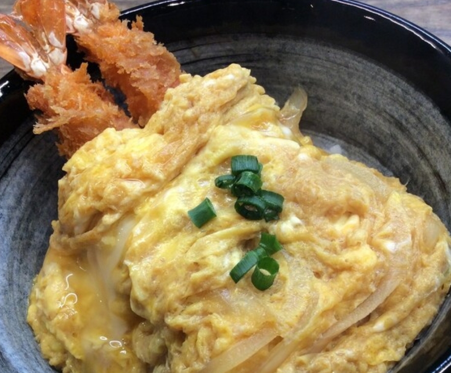 サクサク揚げたてエビフライと濃厚丼が絶品