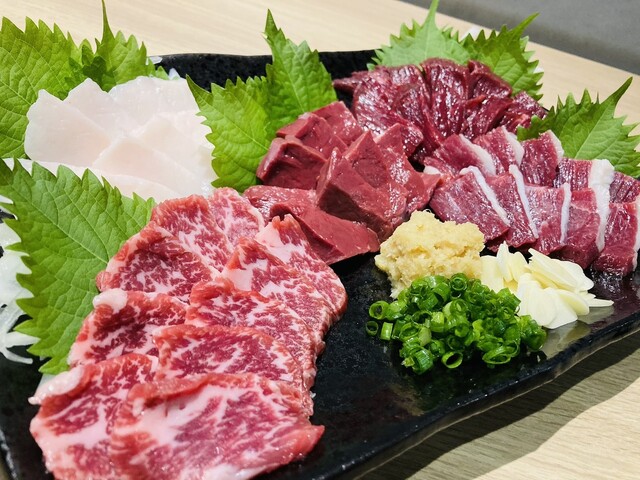 当店自慢の逸品を贅沢に楽しめるコースもご用意いたしました!中でもオススメの【菊陽コース(4,800円)】は、「小鉢」や「馬刺ユッケ」「馬焼肉盛り合わせ」「馬肉コロッケ」「馬肉の焼き飯」「馬汁」などが味わえるボリューム満点の内容♪こだわりの馬肉料理をフルコースでお楽しみいただけます。