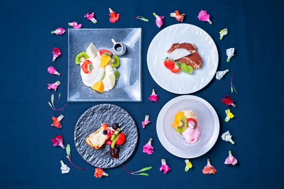 年間約90頭ほどしか出回らない希少価値の高いお肉を使用。前菜の盛り合わせには鮮度の高いお魚を多く使用。盛り付けもお洒落に工夫。