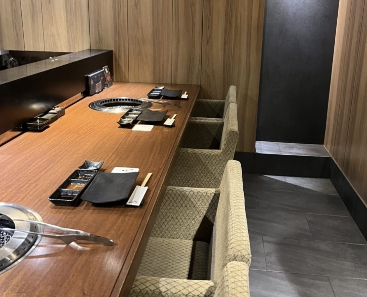 完全防煙の無煙ロースターを使用した快適空間。木のぬくもりが心落ち着く、隠れ家のような上質空間でおもてなしいたします。スポットライトで雰囲気を演出した店内には、デートやご友人との語らいに最適なゆったりとしたカウンター席のほか、3〜6名様用の半個室を2部屋完備。間仕切りを外すことで最大12名様までご利用いただけます。接待や会社宴会、ご家族でのお食事など様々なシーンでご利用ください。