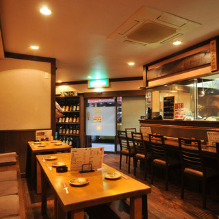 木のぬくもりを感じる落ち着いた空間は、お一人様でも団体様でも気張らずリラックス出来る雰囲気。日々の疲れも癒されるくつろぎの空間でゆったりとお食事をお楽しみください。