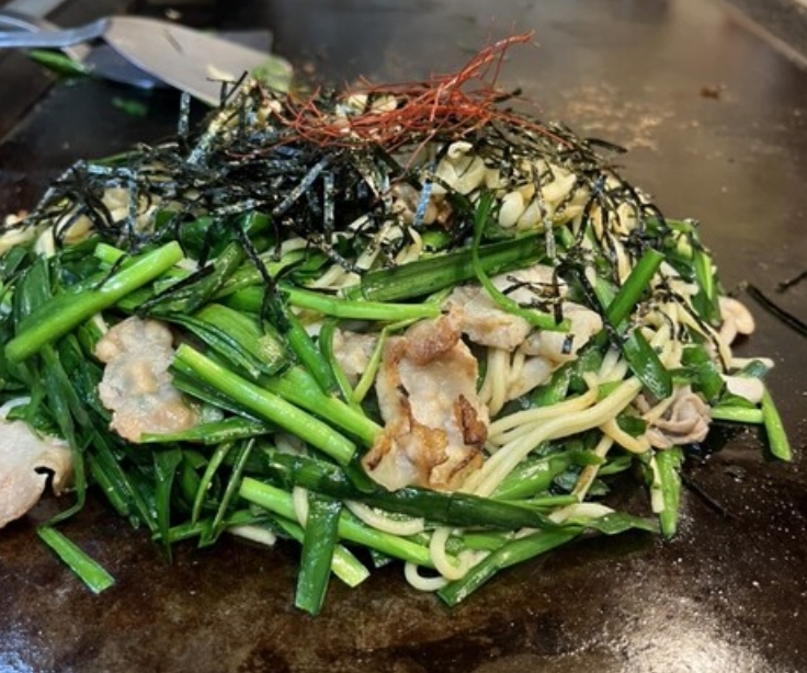 たっぷりの新鮮なニラが主役の塩焼きそばは、火の通り加減も絶妙。甘みとシャキシャキ感が麺と絡み合い、レモンでの味変も楽しめるやみつき必至の逸品です。