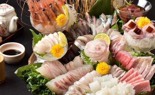 5000円のコースでは刺し盛りや金目鯛のしゃぶしゃぶなど、豪華なメニューが楽しめます。少量ずつの提供で、色々な料理を試せるのが嬉しいポイント。日本酒との相性も抜群です。