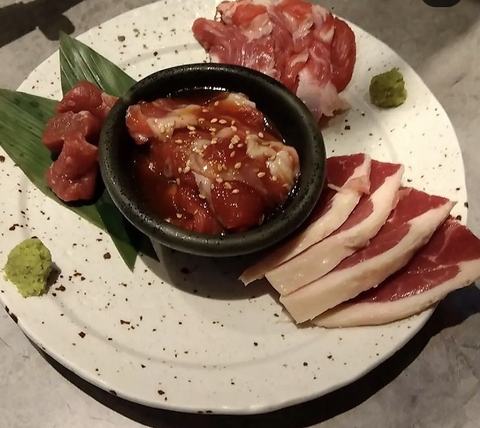 がっつり焼肉料理の他にお酒のアテにおススメのラムを使ったおつまみ各種「ユッケ・ラム肉味噌クリームチーズ・ラムの昆布〆刺」やさっぱり風味の「梅水晶・浅漬け・キムチ」などご用意しております。また、〆の「カレー・ラーメン・つけ麺」や甘味の「ほうじ茶アイス」もございます!