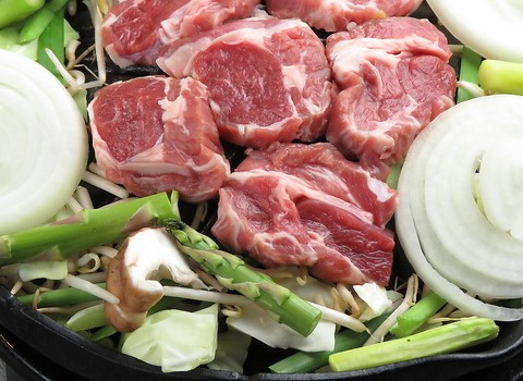 季節折々の旬野菜を厳選入荷。食材そのものの旨味を焼きでもご堪能頂ける「ジンギスカン鍋」は、丸い形で真ん中が盛り上がり、お肉の溶けた脂が溝を伝って落ちるようなデザイン。その流れ落ちた脂で、縁に並べる野菜は香ばしく、とても美味しく焼きあがります♪低温調理で焼き上げるお肉と野菜をご堪能下さい!