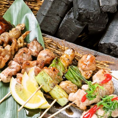 焼鳥は朝引きの新鮮な地鶏を使用!毎日、手串で仕込むので身の弾力が違います。また、備長炭で焼き上げるので本当に美味しい焼鳥を味わえます。常連さんに大人気!