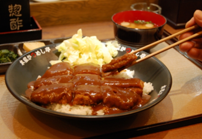 とんこつと鶏ガラをブレンドし様々な野菜も調合した旨味分を更に加え、様々な香辛料等を使用した、旨味分の強いデミグラスソースです。まる2日じっくり煮込んで取っただしをベースにカツと最高に相性の合う、色目は赤茶色、ロースト感のある香ばしい香りのする、とろみあるデミグラスソースを提供しております。