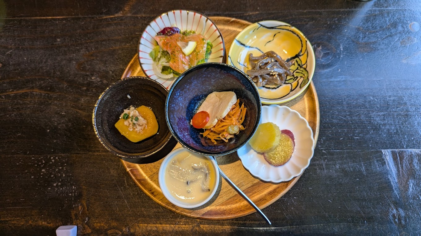 素材の旨味を活かした優しい味付けが特徴。前菜やスープにはたっぷりの野菜が使われており、ヘルシーながら満足感のあるコースを楽しめる。パンだけでなくご飯も選べるのがユニークで、和洋の要素を取り入れた多彩なメニューが魅力。