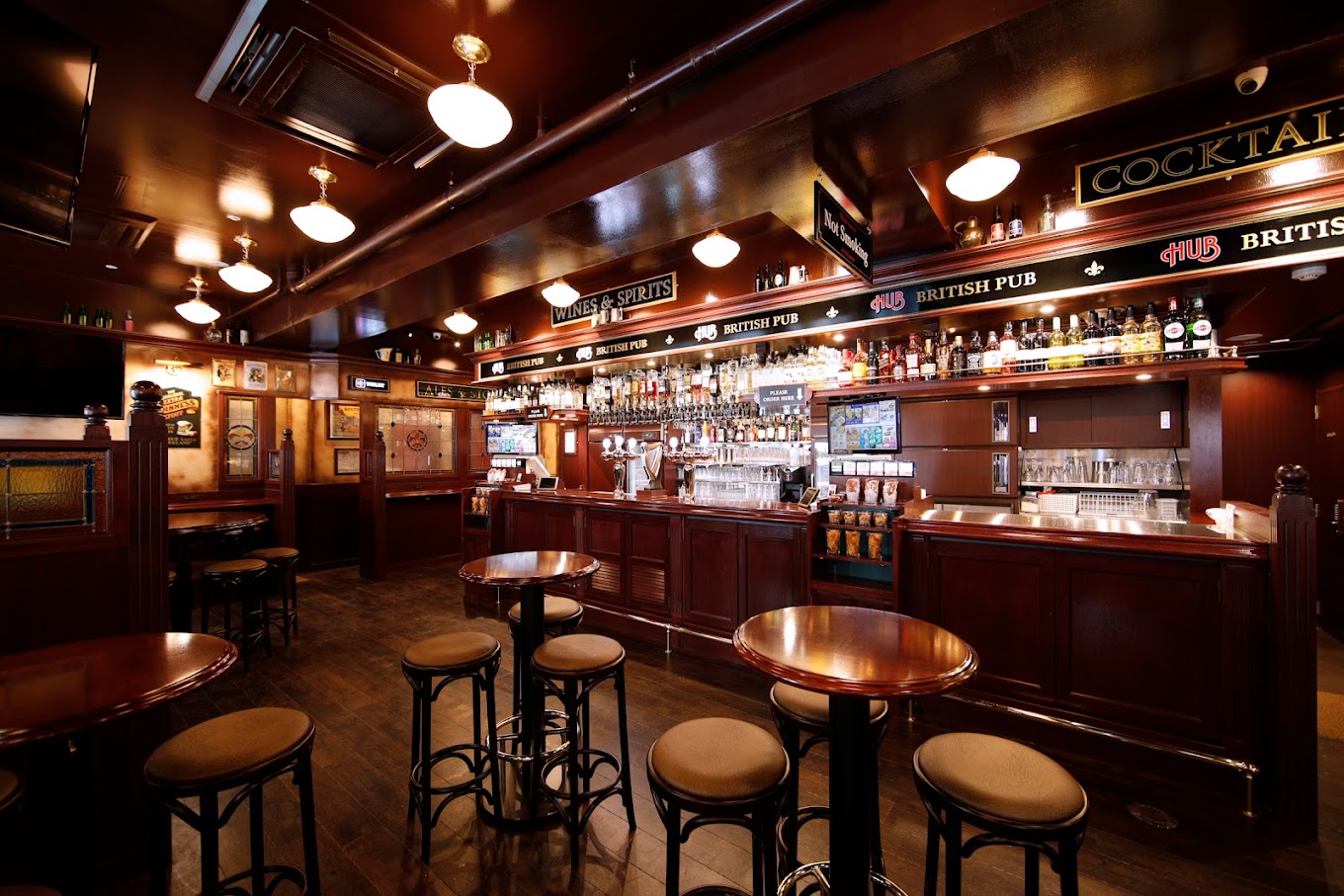 様々なお酒が並ぶカウンターは見ているだけでもワクワク♪世界各国のお酒をリーズナブルな価格で取り揃えてます!本場のPUBさながらの英国調の店内は素の自分に戻れる場所です。