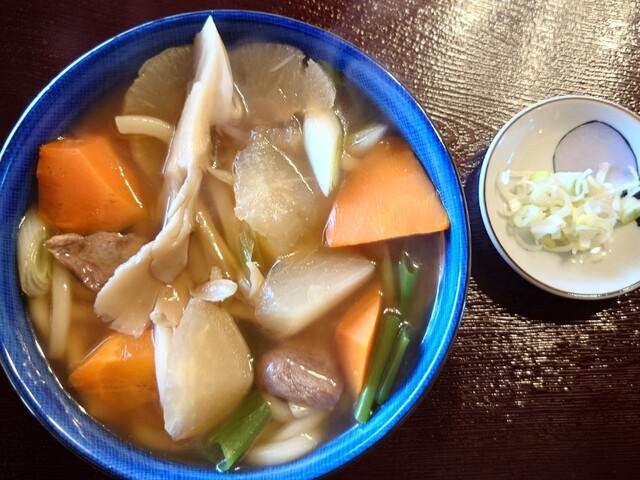 百笑では、愛犬と一緒に室内で食事ができるのが嬉しいポイント。畳の上でリラックスしながら、具沢山の百笑汁や絶品の唐揚げを堪能。アットホームな雰囲気の中、スタッフの温かいおもてなしも魅力です。