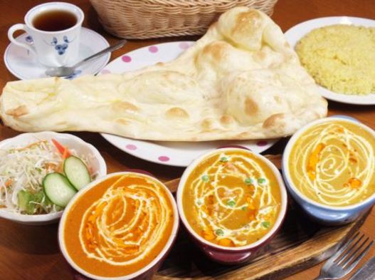 本格カレーの一番人気は、濃厚でクリーミーな「バターチキンカレー」。「ほうれんそうチキン」のカレーと「チーズナン」もぜひお試しいただきたい一品です!
