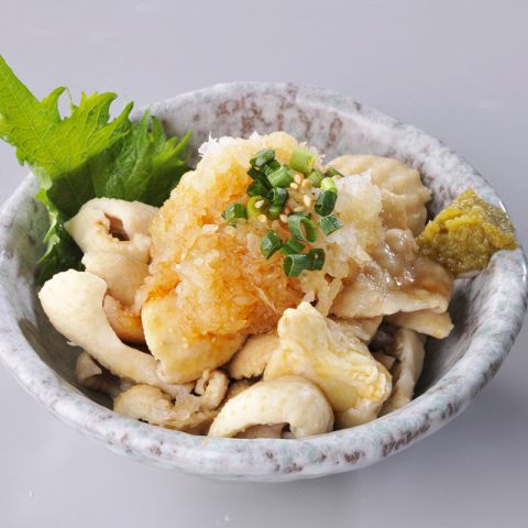 鳥取県の豊かな大地と自然な空気、綺麗な地下水で育てられた銘柄鶏【大山鶏】を使用。その肉質は確かな歯ごたえと、ジューシーな旨みが自慢!