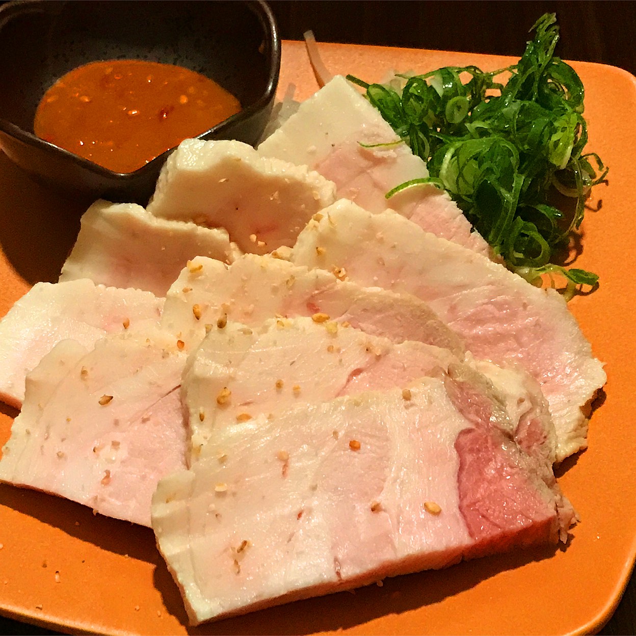 臭みがなく脂身がさっぱりして甘みがあるもち豚を使用。やわらかな身に青ネギのシャキシャキがナイス!