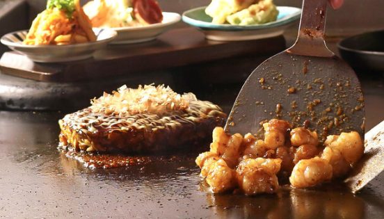かつおや鶏ガラの出汁を効かせた生地を使用し、外はサクッと中はふんわり焼き上げた一枚は絶品。オリジナルソースとの相性も抜群で、素材の旨みをしっかり引き出しています。鉄板焼きならではの美味しさが堪能できます。